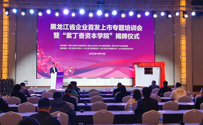 10月13日,由省地方金融監(jiān)管局、黑龍江證監(jiān)局、哈爾濱新區(qū)管委會(huì)、省產(chǎn)權(quán)交易集團(tuán)聯(lián)合舉辦的黑龍江省企業(yè)首發(fā)上市專題培訓(xùn)會(huì)暨“紫丁香資本學(xué)院”揭牌儀式在哈舉行。