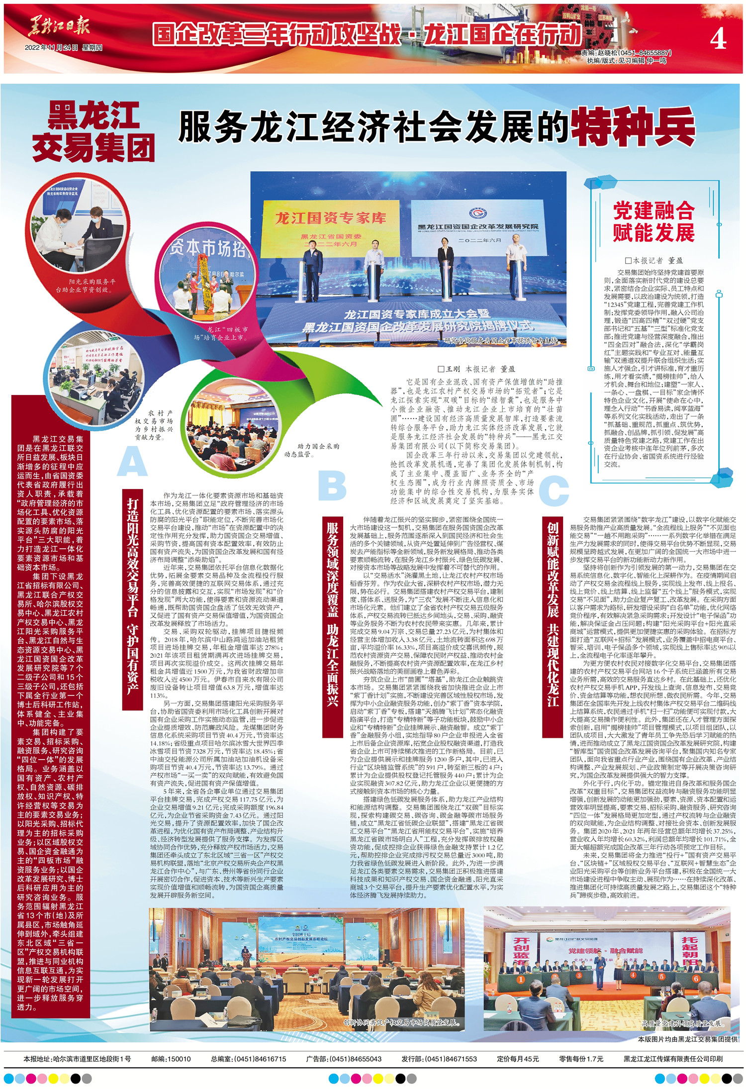 伴隨著龍江振興的堅實腳步,緊密圍繞全國統(tǒng)一大市場建設這一契機,交易集團在服務國資國企改革發(fā)展基礎上,服務范圍逐漸深入到國民經濟和社會生活的多個關鍵領域,從資產處置延伸到廣告經營權、煤炭去產能指標等全新領域,服務新發(fā)展格局、推動各類要素順暢流轉,在服務龍江鄉(xiāng)村振興、綠色低碳發(fā)展、對接資本市場等戰(zhàn)略發(fā)展中發(fā)揮著不可替代的作用。