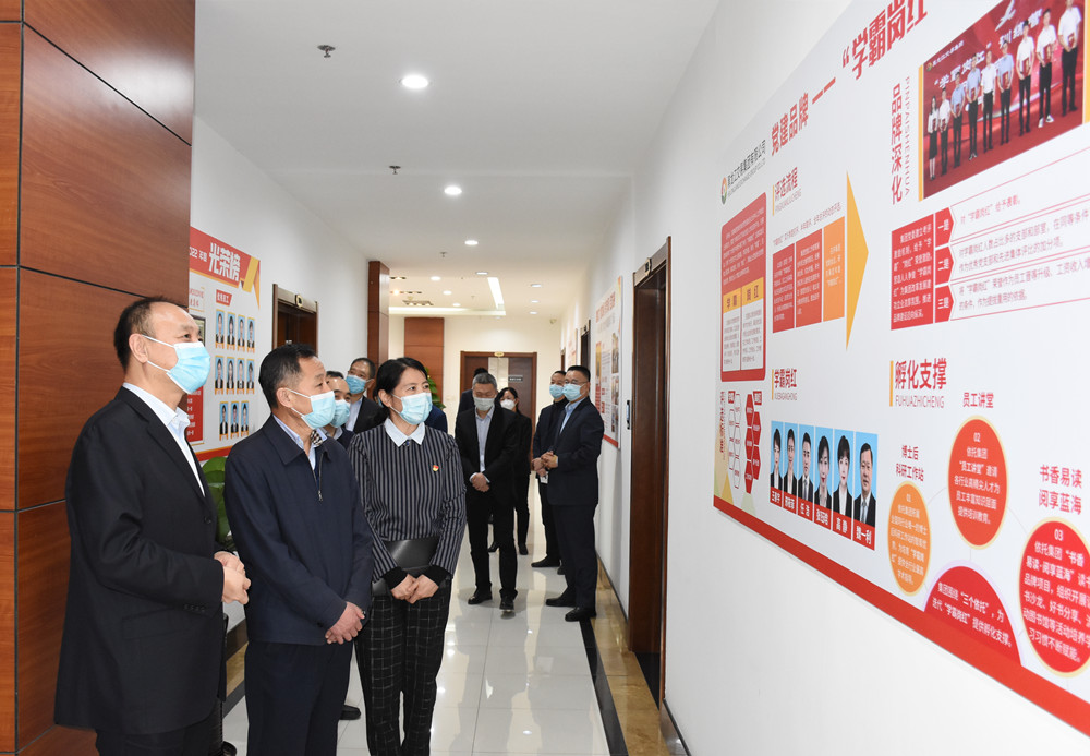 座談前,李忠江一行通過(guò)觀看企業(yè)宣傳片和企業(yè)黨建走廊,了解集團(tuán)板塊發(fā)展和黨建工作情況。