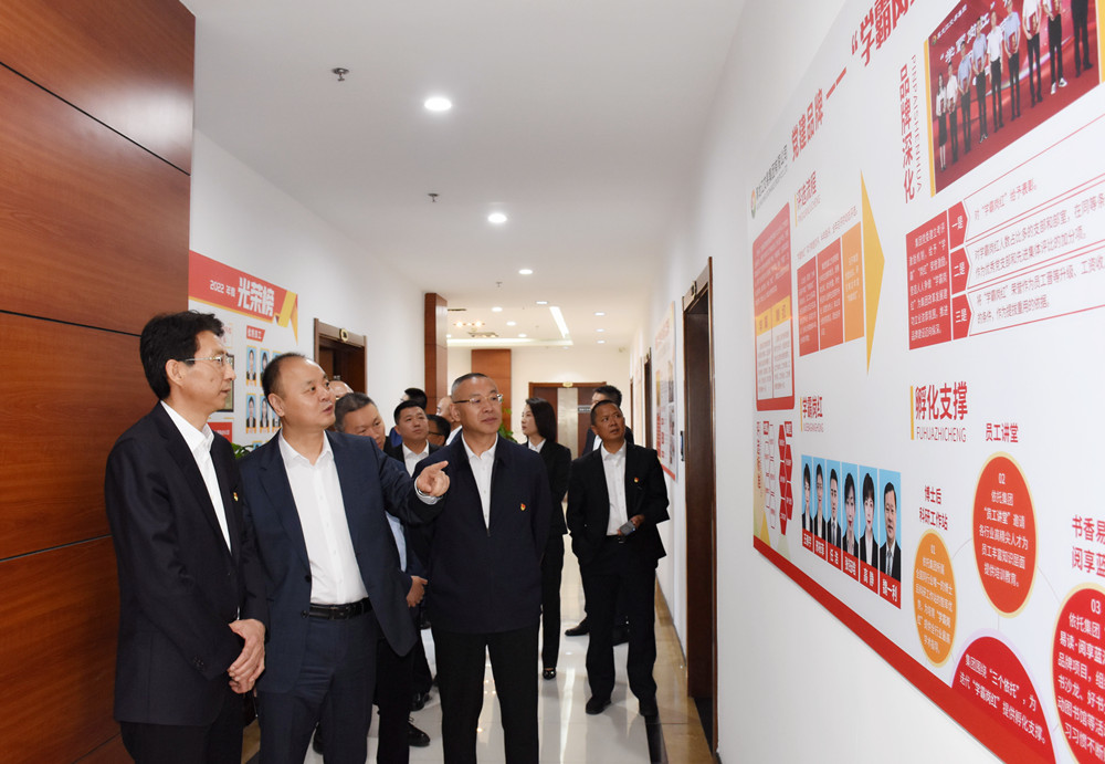 座談前,蔣濟眾一行在集團一樓業(yè)務辦理大廳通過講解員講解,觀看集團企業(yè)宣傳片,參觀企業(yè)黨建文化走廊,全面了解交易集團發(fā)展情況。
