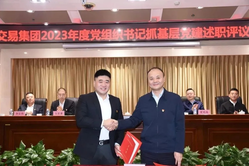省國資委黨建工作處劉長明在點評時指出,交易集團黨委認真學習貫徹習近平新時代中國特色社會主義思想和黨的二十大精神,全面領會、堅決貫徹習近平總書記視察我省時重要講話重要指示精神,堅持把抓好黨建作為最大的政績,認真履行管黨治黨政治責任,堅定不移推動全面從嚴治黨向基層延伸,黨建引領創(chuàng)新創(chuàng)效,工作措施有力有效,責任壓力壓緊壓實,基層黨建工作質(zhì)效有了新提升。2024年是實施“十四五”規(guī)劃的關鍵一年,要進一步強化政治引領,推動基層黨組織和黨員干部增強“四個意識”、堅定“四個自信”、做到“兩個維護”;要進一步擦亮黨建品牌,立足企情實際,積極探索創(chuàng)新國企黨建新方法新模式,進一步擦亮我省新業(yè)態(tài)國企黨建工作品牌;要進一步強化責任落實,全面推進落實企業(yè)政治建設、基層組織建設、宣傳思想建設、干部和人才隊伍建設、“三實”作風和黨風廉政建設等重點任務,扎實抓好述職評議點評查擺問題的整改工作,全面推進從嚴治黨,為推動企業(yè)高質(zhì)量發(fā)展構(gòu)筑堅實保障。