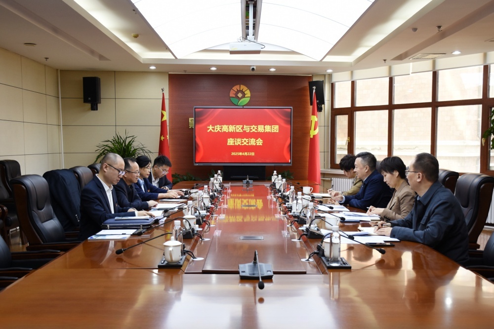 新聞中心 > 集團(tuán)要聞4月22日,大慶高新區(qū)黨工委委員、經(jīng)濟(jì)發(fā)展局局長(zhǎng)楊波,大慶高新資產(chǎn)管理有限公司董事長(zhǎng)劉雙華一行到交易集團(tuán)進(jìn)行座談交流,交易集團(tuán)黨委副書記、副董事長(zhǎng)、總經(jīng)理夏明禹與來訪客人進(jìn)行座談。大慶高新資產(chǎn)管理有限公司副總經(jīng)理徐永迪,副總經(jīng)理陳昭,交易集團(tuán)總經(jīng)理助理,及雙方有關(guān)部門、權(quán)屬企業(yè)負(fù)責(zé)同志參加座談。