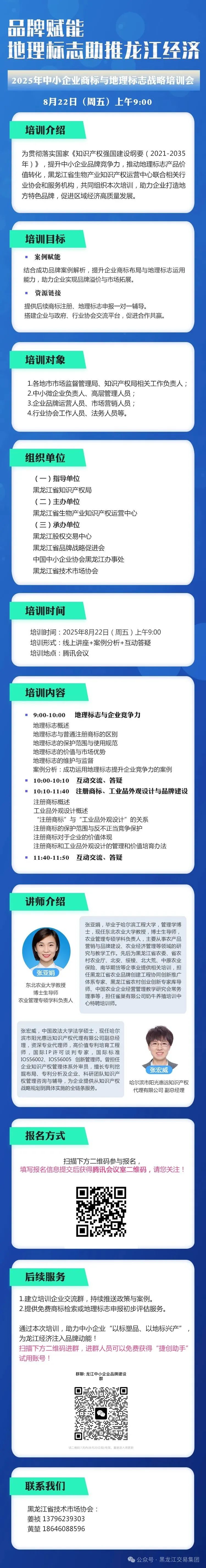 由黑龍江省知識產(chǎn)權(quán)局指導(dǎo),黑龍江省生物產(chǎn)業(yè)知識產(chǎn)權(quán)運營中心主辦,黑龍江股權(quán)交易中心、黑龍江省品牌戰(zhàn)略促進會、中國中小企業(yè)協(xié)會黑龍江辦事處和黑龍江省技術(shù)市場協(xié)會承辦的2025年中小企業(yè)商標(biāo)與地理標(biāo)志戰(zhàn)略培訓(xùn)即將舉辦,歡迎相關(guān)從業(yè)人員積極報名參加。