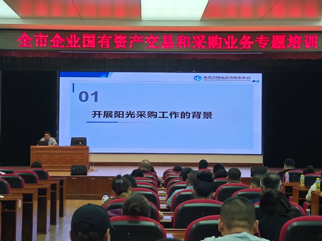 新聞中心 > 子公司動(dòng)態(tài)為深入貫徹落實(shí)省國(guó)資委主要領(lǐng)導(dǎo)對(duì)交易集團(tuán)提出的“走出去、走進(jìn)去、走上去”工作指導(dǎo)意見(jiàn),助力地方國(guó)資國(guó)企改革提質(zhì)增效,8月15日,黑龍江陽(yáng)光采購(gòu)服務(wù)平臺(tái)(以下簡(jiǎn)稱采購(gòu)平臺(tái))赴佳木斯市開(kāi)展“國(guó)有企業(yè)陽(yáng)光采購(gòu)制度背景及規(guī)則介紹”專題培訓(xùn)。佳木斯市屬國(guó)有企業(yè)、縣(市、區(qū))國(guó)資監(jiān)管機(jī)構(gòu)及出資企業(yè)共計(jì)110余人參加培訓(xùn)。