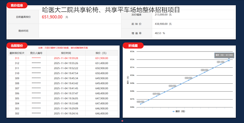 哈爾濱醫(yī)科大學附屬第二醫(yī)院共享輪椅、共享平車場地整體招租項目和自助售貨機場地整體招租兩個項目在黑龍江聯(lián)合產(chǎn)權交易所圓滿落槌。其中,共享輪椅、共享平車場地整體招租項目以48.53%的增值率成交,自助售貨機場地整體招租項目增值率高達146.75%,兩個項目均實現(xiàn)國有資產(chǎn)價值突破性躍升,構建起“醫(yī)院資源活化、承租方享收益、醫(yī)患共得便利”的三方共贏生態(tài)。